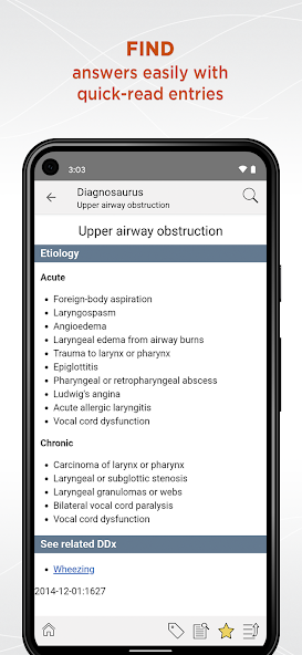 這種快速參考的工具可以幫助醫療保健專業人員在護理點以速度和信心進行差異診斷。對於診斷龍,您可以通過器官系統,症狀或疾病快速搜索1,000多次診斷,也可以查看所有條目。在每個條目中使用有價值的“查看相關DDX”功能來考慮替代性診斷並迅速鏈接到這些條目。方便的“收藏夾”功能使您可以在個人存檔中保存特定的搜索和書籤。